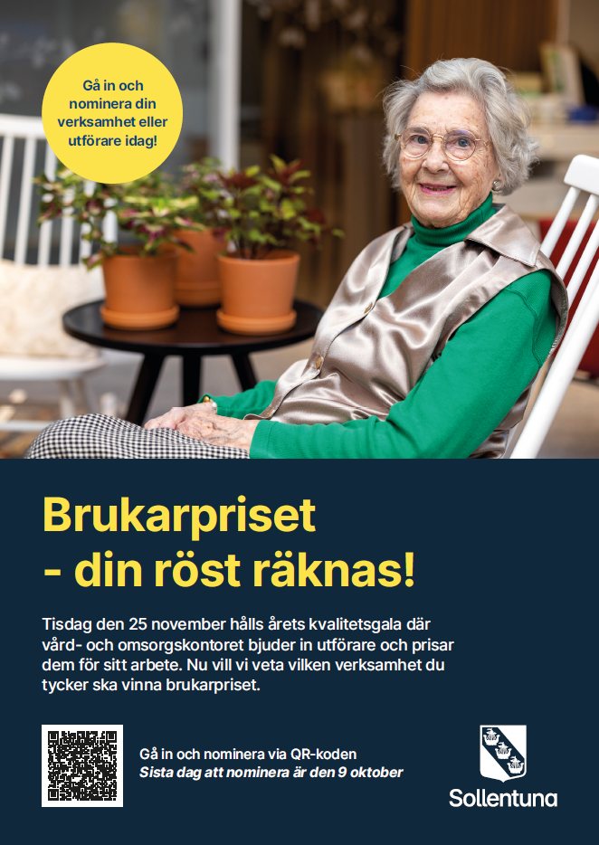 Det delas då även ut ett brukarpris – och där har du som kommer i kontakt med SOLOM (eller någon annan av kommunens utförare) på något sätt; som boende, deltagare, anhörig eller annat, möjlighet att nominera en person eller verksamhet du tycker gjort sig förtjänt av en utmärkelse.